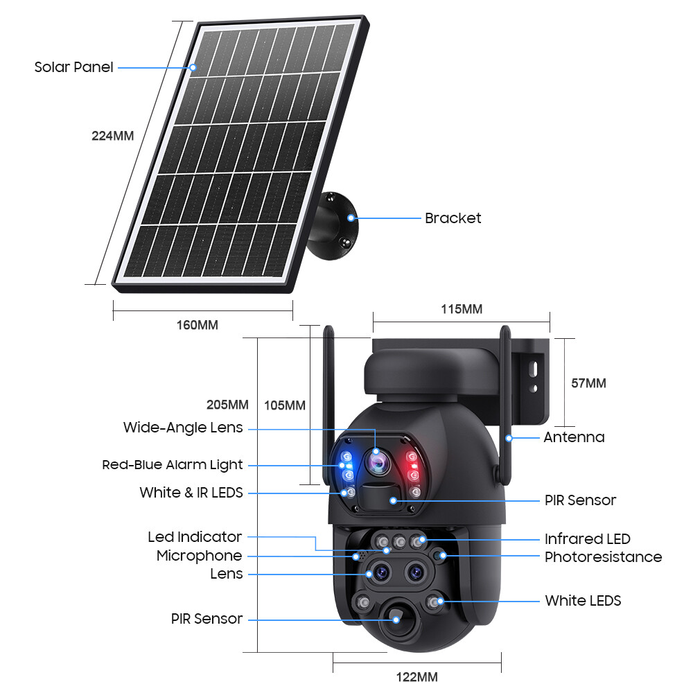De camera werkt op een krachtige interne batterij die wordt opgeladen via het meegeleverde zonnepaneel. Hierdoor is permanente bekabeling niet nodig.