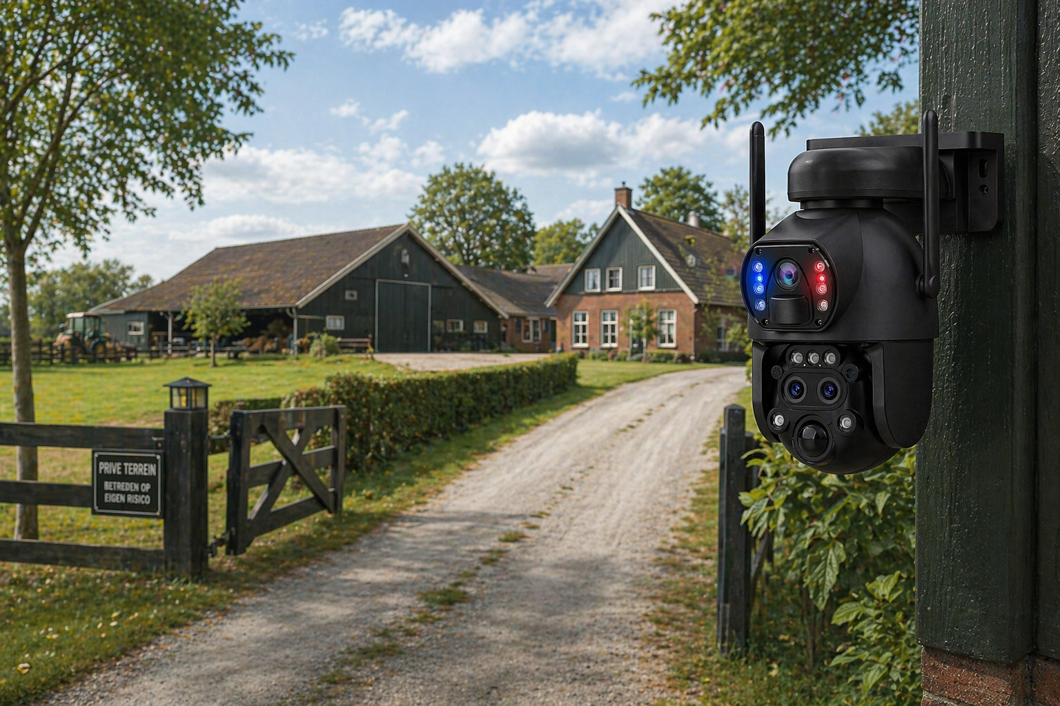 In tegenstelling tot standaard beveiligingscamera’s is dit model uitgerust met meerdere slimme functies zoals een PTZ-camera, sirene, flitslichten en tweeweg audio. Hierdoor is het niet alleen een bewakingscamera, maar ook een actief alarmsysteem dat direct kan waarschuwen en afschrikken.